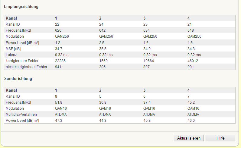 Hier mal ein Screenshot meiner Kabel-Informationen aus der Fritzbox: