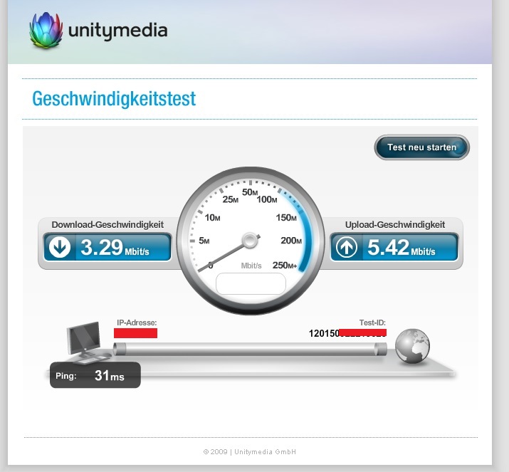 Ich bin seit 1 Woche Neukunde bei Unitymedia und habe den 2play 120.000 kbit Tarif. Jeden Tag ab ca 17 Uhr bis 1 Uhr nachts sinkt mein Downstream auf 1.000-15.000 kbit/sek! (kurzzeitig auch mal 20.00 0kbit/sek). Das macht normales Surfen und Youtube Videos anschauen fast unmöglich!. Es kann doch nicht sein, dass die "abendliche Netzauslastung" nur so wenig Bandbreite zulässt, wenn ich für einen 120.000kbit Anschluss bezahle. Ich verstehe, dass abends viele Leute online sind, aber 1.000 bis maximal 20.000 kbit/sek sind viel zu wenig. Mit 50.000-70.000 kbit/sek wäre ich zufrieden. In dieser einen Woche hatte ich nur ein einziges Mal einen speedtest mit 120.000kbit/sek!. Das war um 3 Uhr morgens. Speedtest wurde per LAN-Anschluss und 5m Cat5-Kabel (S/FTP PIMF) und von folgenden Hostern durchgeführt: http://speedtest-1.unitymedia.de/ ; http://www.wieistmeineip.de/ und http://www.speedtest.net/de/. Mit meinem Modem (TC7200) ist alles in Ordnung. SNR ist stets bei 34-38 und die Leistung bei 4.2-5.2. WLAN ist deaktiviert. An meinem PC liegt es auch nicht (RJ45 Lan Card Gigabit Ethernet) Sind diese mini-Geschwindigkeiten nicht Anlass auf Verbesserung, bzw. einen deutlichen Preisrabatt? Unitymedia will einen Techniker vorbeischicken, allerdigns muss ich ihn bezahlen, wenn mit der Leitung an sich alles in Ordnung ist und der Downstream stimmt -_- Was soll ich jetzt noch tun?