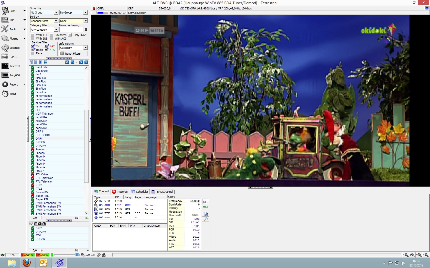 Chris hat geschrieben: Moin Jungs und Mädels, wer mal wieder ORF schauen möchte, sollte seine Zimmerantenne raus holen und an ein Ostfenster gehen. Ich empfange hier Sender aus Linz und Sankt-Pölten. (siehe Screener) Mit dabei sogar dorf.tv oder RTL aus München (unverschlüsselt), dann ORF 1, 2, 3, Puls 4, ATV.... viel Spaß beim Scanen. ...und dann gleich noch das richige Programm - für den großen Kasper das kleine Kasperl
