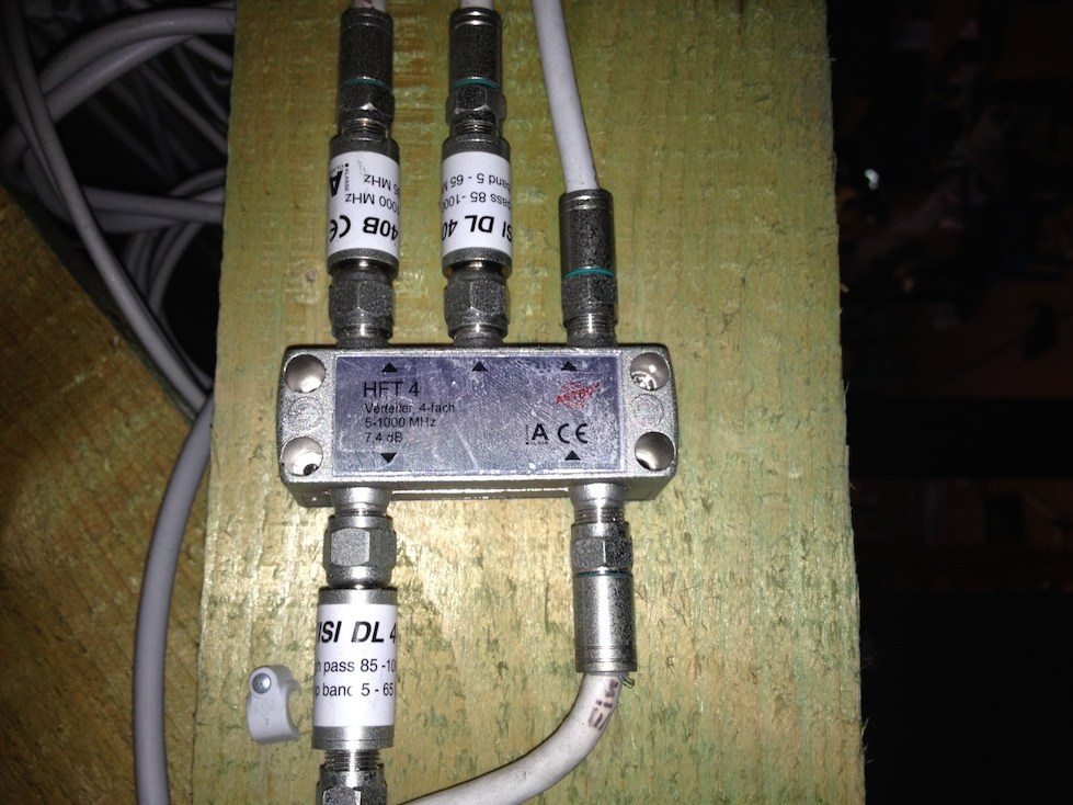 Achja, und was sind eigentlich diese Dinger zwischen dem Koaxkabel und dem Verteiler auf dem Foto. Der KabelBW Techniker der das Kabel ins Wohnzimmer neu gelegt hat, hat wohl lieber darauf verzichtet (Abgang oben rechts im Bild).